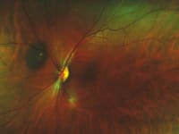 The P200 uses 2 lasers: 1 red and 1 green, which work simultaneously to image the choroid and retina. A 532 nm green laser scans the sensory retina through the pigment epithelium layers of the retina, and the 633 nm red laser scans the deeper structures of the retina from the pigment epithelium through the choroid. Because the red and green lasers separate the inner and outer retinal layers, the green laser visualizes small microaneurysms confined to the inner retina in diabetic patients (Figure 2). The red laser visualizes the choroidal circulation and the depth of the lesions (Figure 3). "This technology helps us pick up lesions at a deeper level of the choroid that are often missed with standard ophthalmoscopy," said Dr. Sherman. A strong suit of the P200 is documenting peripheral pathology. "This is excellent for documenting peripheral issues such as tumors, uveitis, and retinal detachment," said University of California at Los Angeles (UCLA) retinal specialist, Steven Schwartz, MD, "and it works well in terms of postoperative documentation, as well," he added. Dr. Friberg added that in the case of a peripheral tumor, for instance, "this technology makes it easy to see the progression of the tumor, and to decide if intervention needs to be rethought."