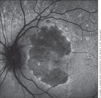 Approximately 90% of patients with age-related macular degeneration (AMD) have the non-neovascular, or dry, form, of the disease. However, the neovascular (wet) form of the disease accounts for most of the severe vision loss from AMD, and thus the vast majority of technological advances to date have been for the diagnosis and treatment of choroidal neovascularization (CNV). Much less attention has been paid to investigating the treatment of dry AMD, which can progress to either CNV or geographic atrophy (GA) (Figure 1) in its late stages. Both of these advanced stages are associated with severe vision loss.