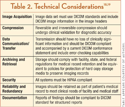 Telehealth programs for DR should clearly define program goals and program performance in relation to accepted clinical standards. In general, the selection of an ocular telehealth system for evaluating DR should be based on the unique needs of the healthcare setting. The Telehealth Practice Recommendations for Diabetic Retinopathy prepared by the ATA clearly delineate performance standards for clinical, technical, and administrative elements of ocular telemedicine for DR (Tables 1, 2, and 3).18,19