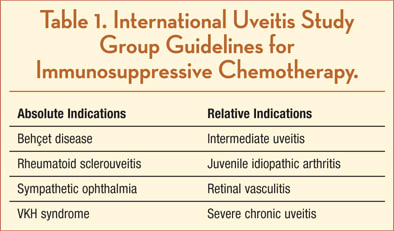 - Jabs DA, Rosenbaum JT, Foster CS, et al. Guidelines for the use of immunosuppressive drugs in patients with ocular inflammatory disorders: recommendation of an expert panel. Am J Ophthalmol. 2000;130:492-513.