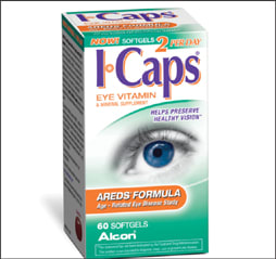 ■ Alcon's ICaps Softgel ocular supplement AREDS formula is designed to help preserve healthy vision. Two Softgels deliver the same levels of antioxidants and zinc ingredients tested in the 10-year Age-Related Eye Disease Study (AREDS) by the National Eye Institute. With half as many pills to take, patients may be more likely to be compliant with recommendations for ocular supplements, says Alcon.