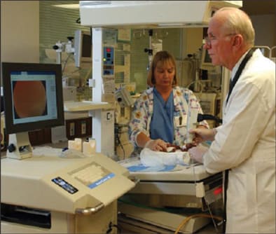 Michael Trese, MD, performs screening for retinopathy of prematurity.