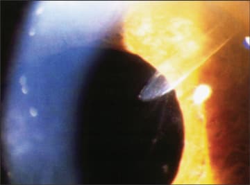 Misdirection of aqueous humor into the vitreous, also known as malignant glaucoma, may occur following any incisional or laser procedure.23-25 The diagnosis is made when a patent peripheral iridotomy or iridectomy exists simultaneously with a symmetrically shallow anterior chamber and an absence of a suprachoroidal effusion or hemorrhage. In contrast, patients with acute angle closure will have an anterior chamber narrower peripherally than centrally. Patients suspected to have malignant glaucoma are first treated with glaucoma pressure–lowering medications and cylcoplegia, but half of patients require further intervention.24