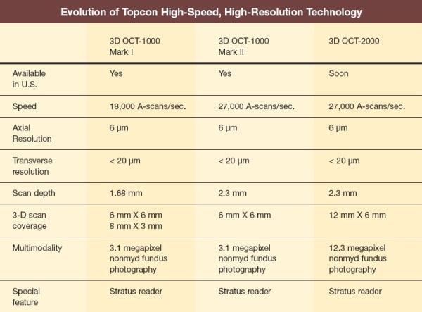 The 3D OCT-2000 from Topcon Medical Systems is an example of an SD-OCT instrument that fulfills these criteria but also provides the ophthalmologist with several additional practical benefits for a real-world efficient clinical practice.