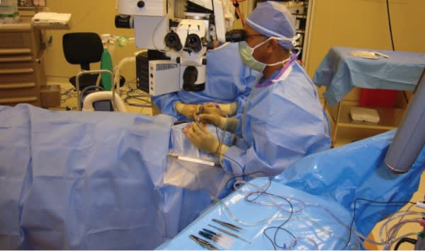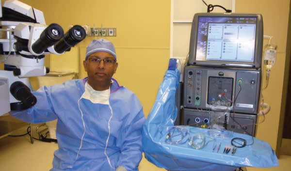 Dr. Gupta prepares for his next patient. Note that all aspects of the machine and instruments are accessible by the surgeon and by the assistant, maximizing efficiency in the OR.