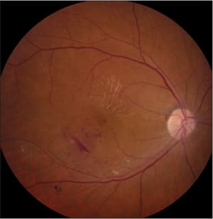 Figure 1. Fundus photograph of the right eye shows inferotemporal BRVO.