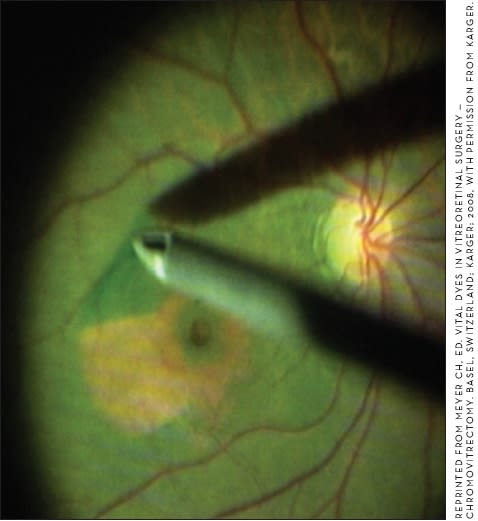"I don't use ICG because of the substantial basic and clinical literature demonstrating its dose-dependent toxicity to retinal and RPE cells," says Mark W. Johnson, professor of ophthalmology and visual sciences at the University of Michigan's Kellogg Eye Center.