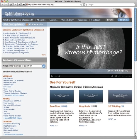 I felt that a Web site could provide basic educational information for anyone interested in Contact B-scan ultrasonography. In addition, a library of real-time images could provide dynamic pattern-recognition capability — especially to those with a background in ophthalmic anatomy and pathology. Building such a site (www.ophthalmicedge.org) required a number of elements, many unavailable 14 years ago. Times have changed!
