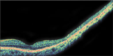Figure 10. OCT revealed atrophic retina temporal to the macula.