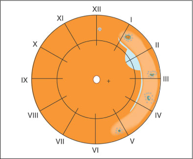 Figure 5. A circumferential buckle was placed after cryo application to the break at 1 o'clock and the three possible breaks 22 months after the initial examination.