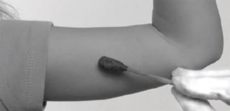 Figure 7. Testing for allergy to povidone-iodine is often done with an arm swab.