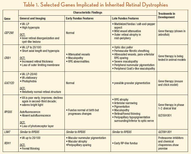 5. Pasadhika S, Fishman GA, Stone EM, et al. Differential macular morphology in patients with RPE64-, CEP290-, GUCY2D-, and AIPL1-related Leber congenital amaurosis. Invest Ophthalmol Vis Sci. 2010;51:2608-2614.