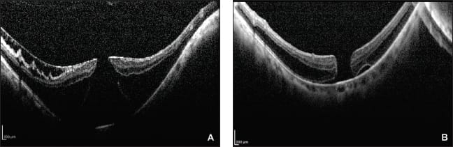 The standard test to detect MF remains OCT. Although time-domain OCT has commonly been used to study the prevalence and characteristics of MF,6,9,11 the new generation spectral-domain OCT, with its superior resolution and ability to provide three-dimensional images, provides such exquisite structural details of the retina that MF can not only be more easily diagnosed, but the other vitreoretinal changes that commonly accompany this complication can also be detected.