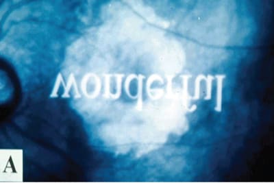 Patients with a complete (Figure 1) or partial (Figure 2) ring scotoma may exhibit a typical slow-fast-slow phenomenon when plotting their reading speed vs print size.4 When confronted with large words, they will read slowly, because they must scan each word that does not fit in their small central island. When they read medium print, they may speed up, until they reach very small print, for which they will slow down again.