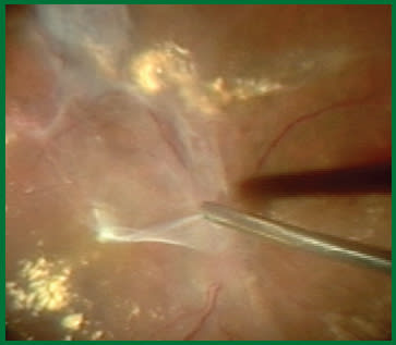 Figure 5. Viscodissection helps to lift fibrovascular tissue so it can be removed more easily with the vitrectomy probe.