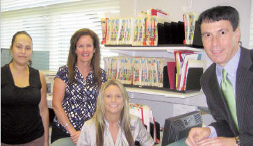 Closely coordinating clinical care with front office staff on billing and scheduling will be critical in the years ahead. Here, Dr. Colucciello (far right) takes a moment with the managers at South Jersey Eye Physicians. |