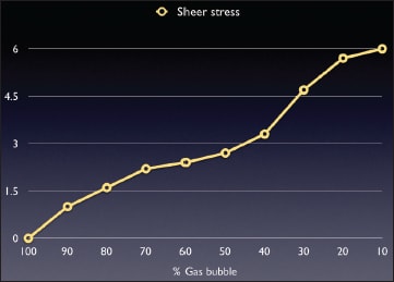 Figure 23. There is an inverse correlation between the size of the gas bubble used and the shear stress in the eye.