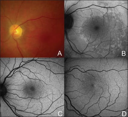 Before sending patients to a time-consuming functional test, such as electrophysiology or visual field testing, I would recommend performing a central FAF scan in any patient being evaluated for unknown visual loss. For example, FAF findings may greatly help to establish the early diagnosis of retinal and macular dystrophies. Compared to other imaging modalities, disease manifestation and the extent of area involved may be more evident. In this context, FAF imaging is also helpful to distinguish AMD from lateonset of macular dystrophies mimicking age-related changes.