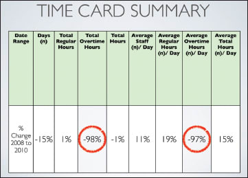Figure 21. The overall number of overtime hours decreased by almost 100%.