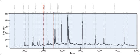 A spectra result of multiple AMD target mutations used in the RetnaGene test.