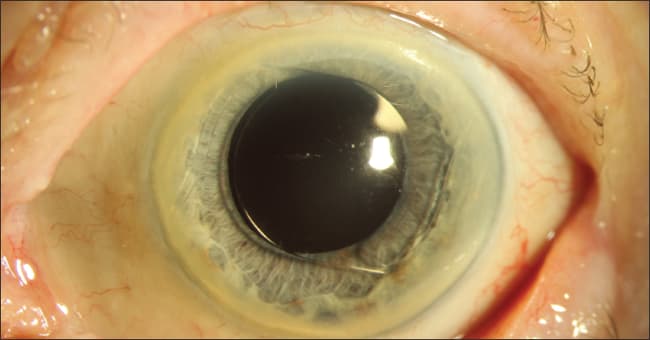 Figure 3. The left eye postoperatively showed an anterior-chamber intraocular lens with inferior peripheral iridectomy.