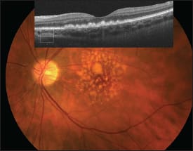 Figure 2. Clinicians may employ OCT in addition to fundus photos in cases of high risk.