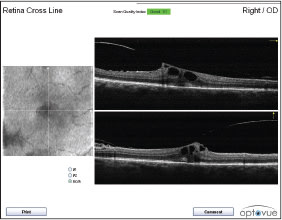 Kenneth R. Diddie, MD, was happy with the performance of his Cirrus SD-OCT. It had performed well in his retina practice, in addition to clinical trials in which he had participated. But with three offices, it soon became clear that one OCT was not enough. The high cost, however, made outfitting all three sites out of the question. Then he discovered Optovue’s iVue (Figure 1). Advertised as the “next generation in advanced OCT,” the iVue delivers excellent image quality in a compact package, he says. Dr. Diddie and his partner can easily take the OCT and a laptop computer back and forth between their two other sites. “It’s very easy to transport. We have a table or a stand at each of the locations to hold it,” he explains. “We also hook up all of our images on Axis, which is a way for us to compare images from really any location.”