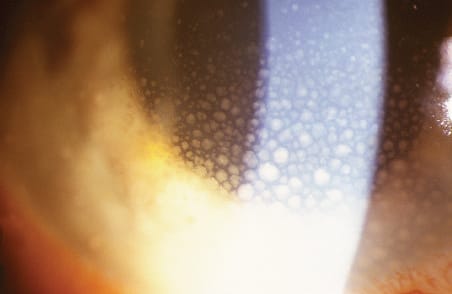 Figure 1. Granulomatous anterior-chamber inflammation with large keratic precipitates in a patient with ARN.