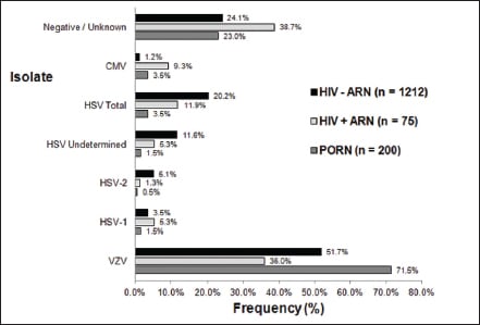 Figure 5. Isolate frequency by patient group. HIV-negative ARN vs HIV-positive ARN vs PORN.28
