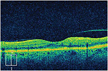 A 79-year old woman complained of decreased visual acuity – from 20/25 to 20/50 – of 5 weeks’ duration. A color fundus photograph of the left eye (Figure 1) showed macular edema and scattered intraretinal hemorrhages. Significant intraretinal dye leakage due to retinal angiomatous proliferation (RAP) was seen on the fluorescein angiogram (Figure 2). The OCT image (Figure 3) demonstrated intraretinal edema with insignificant vitreomacular adhesion. At follow-up, the patient received aflibercept 2 mg intravitreally and returned in 4 weeks for re-evaluation. Her visual acuity had improved to 20/30 and the repeat OCT image (Figure 4) showed complete resolution of the intraretinal edema.
