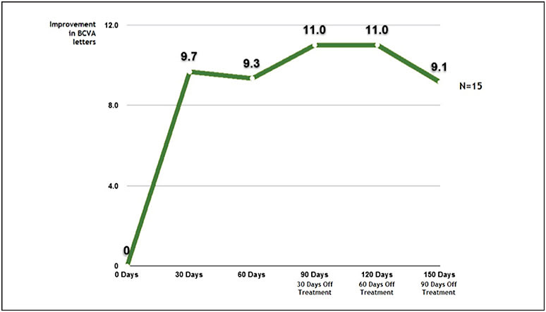 Figure 2. A mean improvement of approximately 10 letters in VA was maintained over 90 days with ALG-1001.