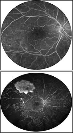 UWF FA may be used to guide the treatment of proliferative diabetic retinopathy. In one case, UWF FA directed the management of a patient with PDR combined with asteroid hyalosis.13
