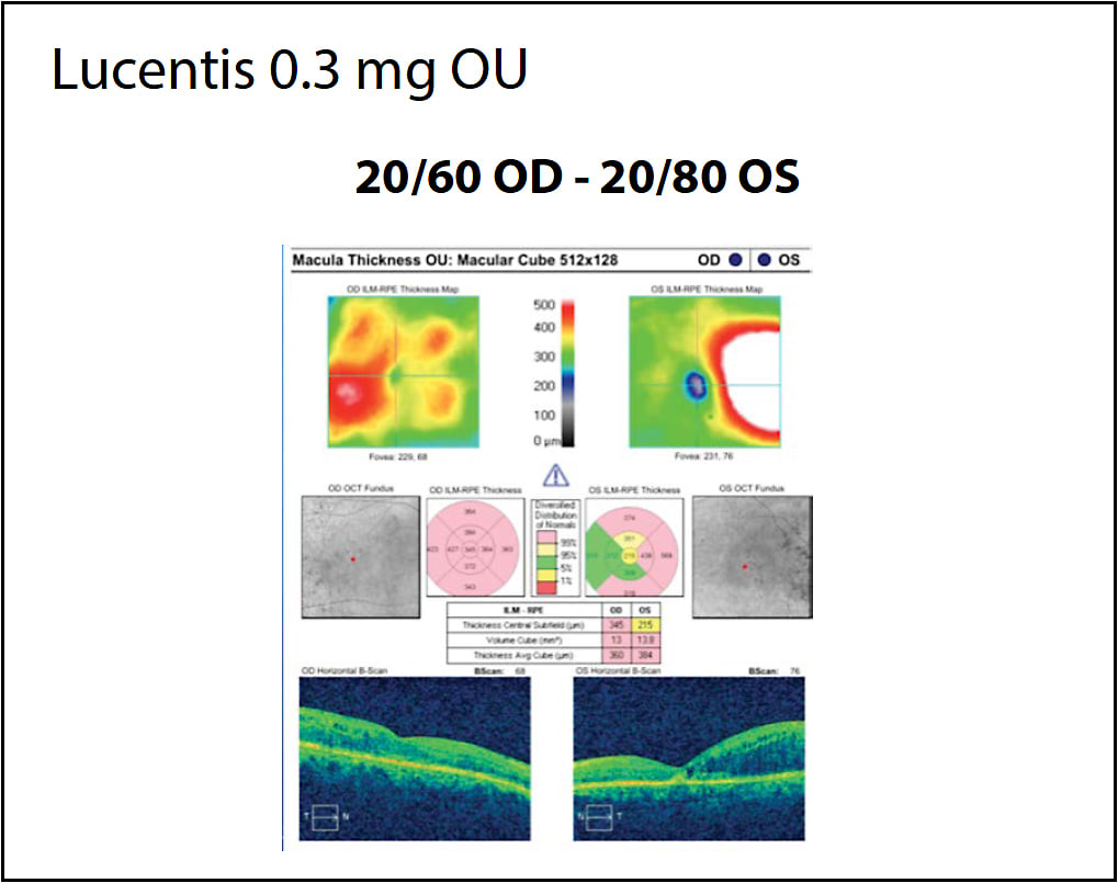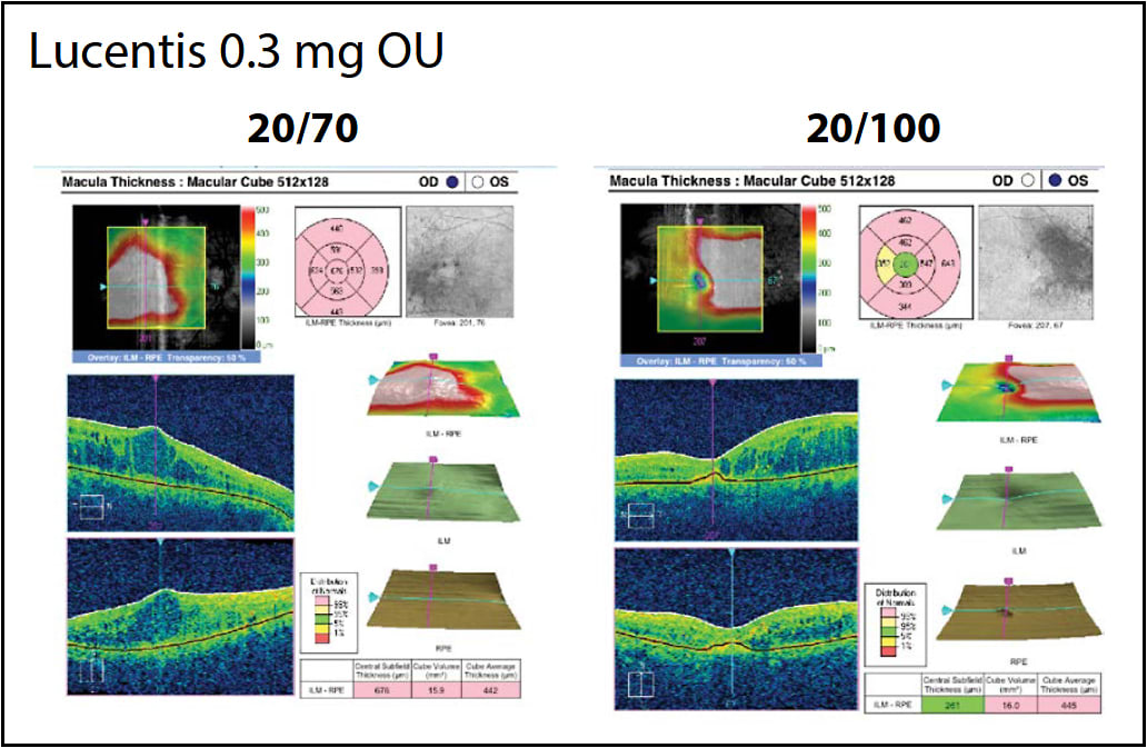Figure 2. Given the persistent edema, both eyes were treated with Lucentis 0.3 mg during a follow-up visit.