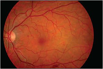 Figure 1. Young woman with a history of diabetes mellitus type 1 presented with featureless retina.