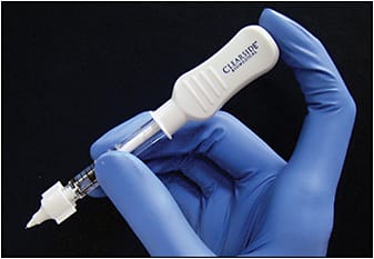 The development of a minimally invasive method of administering drug to the eye through the SCS using a proprietary microinjector (Figures 2 and 3) is a novel approach for managing posterior-segment disease. The microinjector is a syringe with a needle that is approximately 1 mm in length.