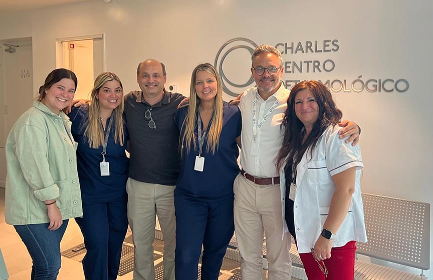 Patricio Schlottmann, MD (second from right) with his team at the Charles Centro Oftalmológico (Charles Research Center) in Buenos Aires. During 2025, the center was involved in more than 10 trials, with more than 160 patients enrolled in ongoing studies.